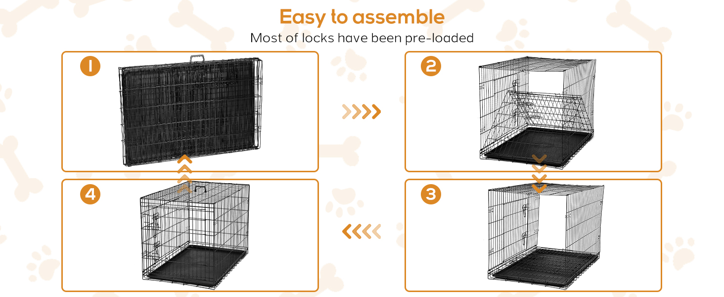 EFFORTLESS ASSEMBLE & PORTABILITY: Our dog crate can be quickly and easily assembled in seconds without the need for any tools. Additionally, it conveniently folds, allowing for hassle-free transport and storage. Whether you're traveling, camping, or embarking on any on-the-go adventures with your furry friend, our collapsible dog crate is perfect.