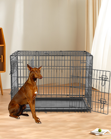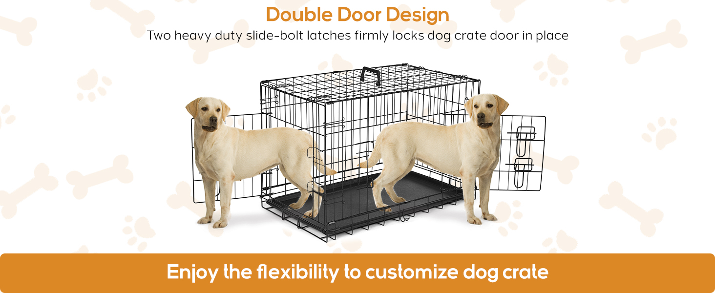 Double-Door Dog Crate: Measuring at 36.61 x 22.64 x 24.21 inches, this crate is designed for intermediate dog breeds weighing between 40 to 70 pounds. If your dog's weight or size falls on the higher end within this range, we recommend purchasing the next size up crate for optimal comfort and space.